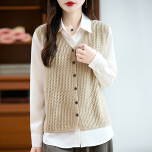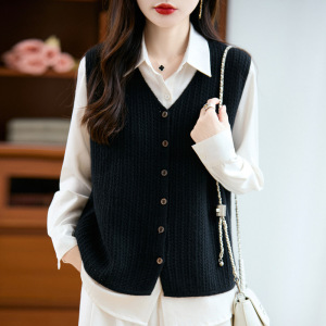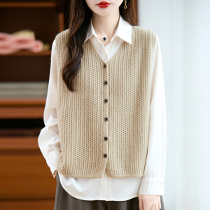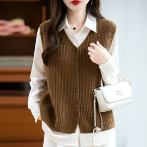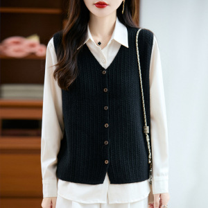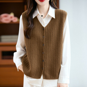 100%纯羊毛2025秋冬女新款V领宽松无袖叠穿坎肩针织马甲开衫毛衣