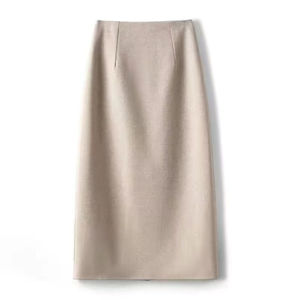A字毛呢半身裙女秋冬2025新款气质高腰开叉中长款一步包臀直筒裙
