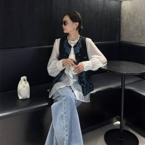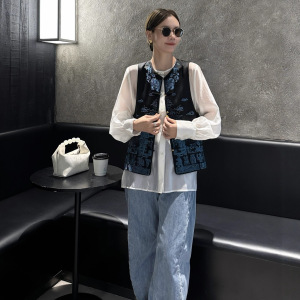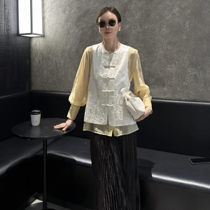 醋酸刺绣新中式马甲背心圆领盘扣白色坎肩精致简单国风马夹带里衬