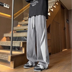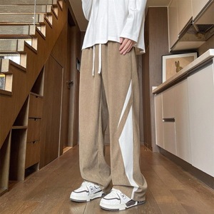 日系灯芯绒裤子男款秋冬季宽松直筒青少年阔腿裤加厚男士休闲长裤