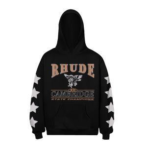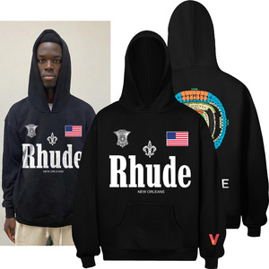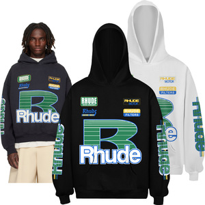 25S跨境欧美潮牌RHUDE几何字母图案印花连帽卫衣男女高街帽衫外套