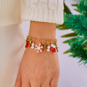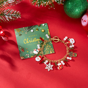 欧美跨境饰品圣诞节合金吊坠手链节日礼物圣诞雪人手串氛围感手饰