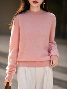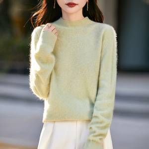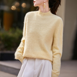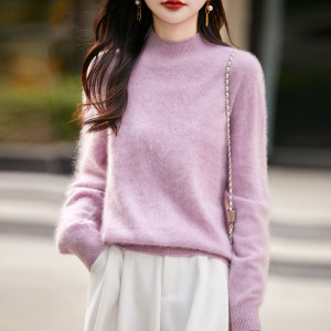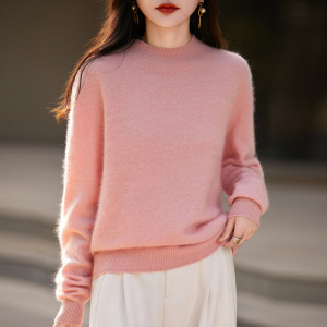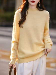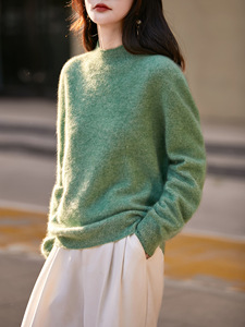 秋冬新款丰盈纯色羊毛衫女半高领针织打底厚宽松慵懒风拉毛毛衣