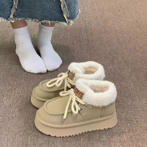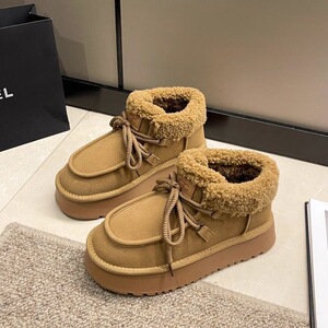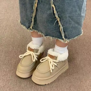 跨境冬季加绒舒适保暖不闷脚女靴女棉鞋百搭纯色复古英伦风时尚鞋