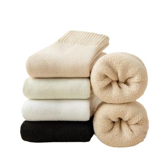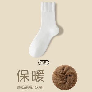 毛绒长筒冬天厚袜子女秋冬季中筒袜加绒毛巾袜加厚款保暖毛圈袜子