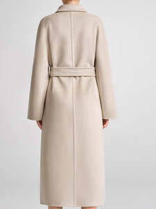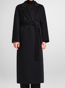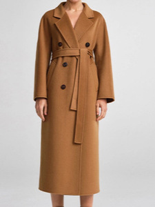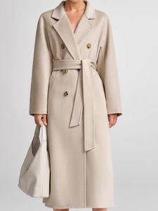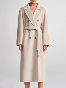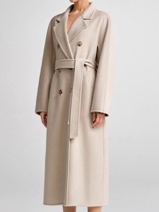 Ma**女装2025秋冬新款双面羊绒大衣女士长款米色双排扣毛呢外套
