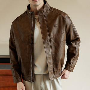 春秋高端皮衣外套男加肥加大潮牌痞帅休闲宽松机车服PU皮立领夹克