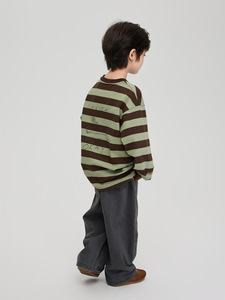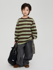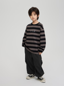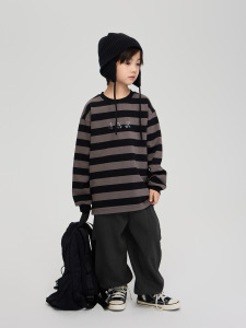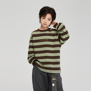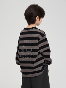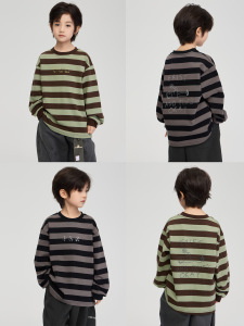 2025秋季童装新款男童小雏菊印花纯棉上衣中大童宽松休闲条纹卫衣