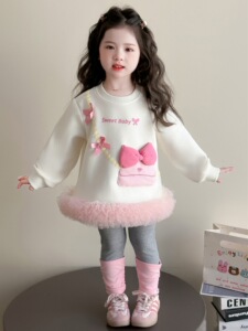 女小童网纱卫衣套装春秋款女宝宝洋气时髦秋装小女孩韩版两件套潮