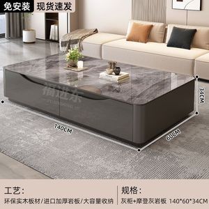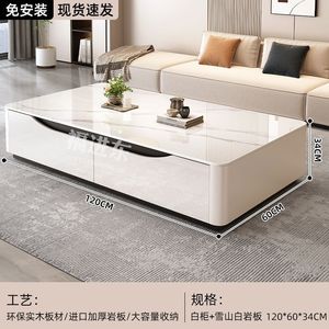 岩板茶几电视柜组合客厅2025新款家用小户型奶油高级感实木茶几桌