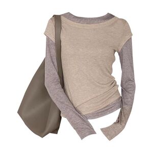 秋冬美拉德女装早秋拼接设计感假两件长袖t恤休闲百搭上衣