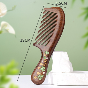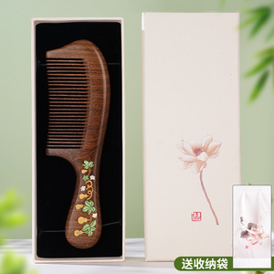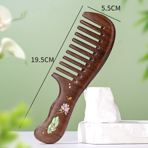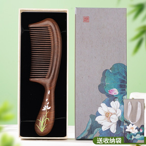 黑金檀双弯荷花宽齿柄梳礼盒款
