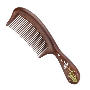 黑金檀双弯荷花宽齿柄梳
