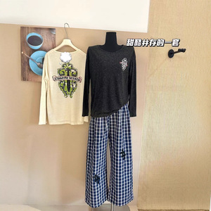 CH2025早秋新款克罗十字套装防晒+皮标格纹裤松弛感两件百搭批发