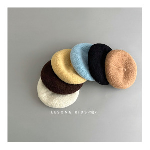 儿童韩版洋气百搭简约纯色贝雷帽