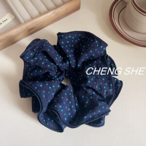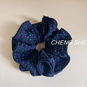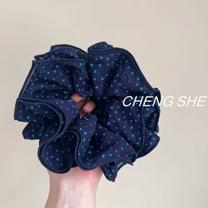 韩版复古藏青波点大肠发圈女小众氛围感扎发头绳网红发绳气质头花