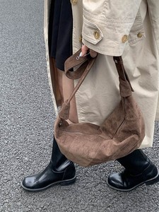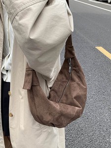 跨境麂皮绒包包女2025秋冬新款潮大容量单肩包小众设计质感饺子包