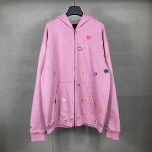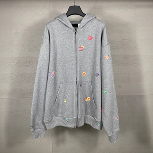 高版本巴黎SS25新款B家水果图案Vintage满印洗水做旧拉链开衫外套