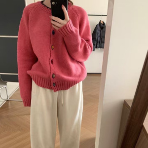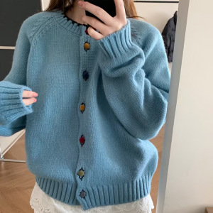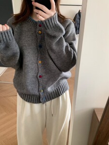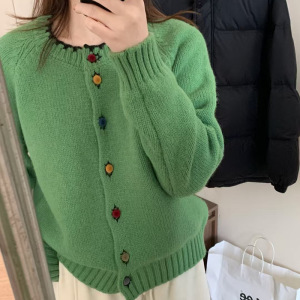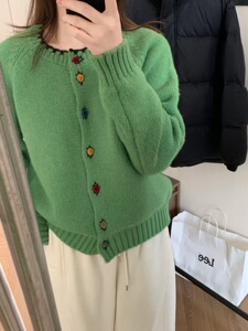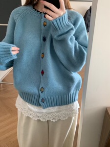 韩系多巴胺彩色丝绒扣设计感针织开衫秋冬季温柔风毛衣外套A6712