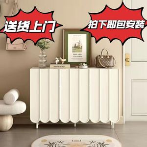 奶油风轻奢鞋柜家用门口靠墙入户玄关柜现代简约大容量阳台储物柜