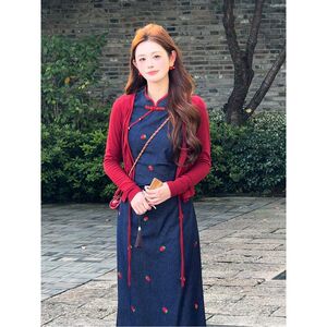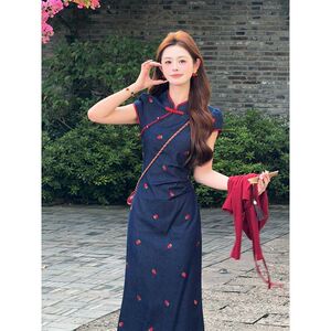 新中式改良草莓刺绣旗袍2025夏少女风日常素雅连衣裙