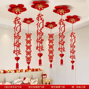 婚房吊顶_立体花【我们结婚啦+镂空蝴蝶】挂饰(送胶)