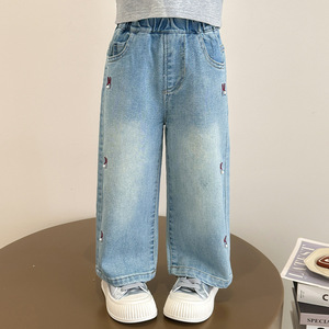 女童春秋装牛仔裤子2025新款洋气女宝宝阔腿裤休闲儿童直筒牛仔裤