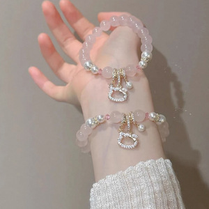14k包金保色金粉KT猫手链水晶diy配件卡通猫隔珠吊坠项链手链配饰