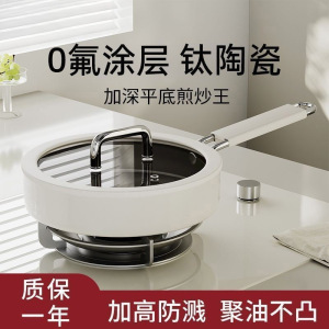 钛陶瓷煎锅平底锅家用不粘牛排锅厨房铁锅炒菜锅电磁炉燃气灶