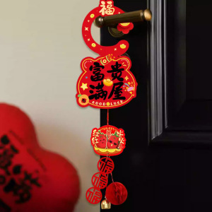 【2个】乔迁之喜+富贵满屋_卡纸门把手