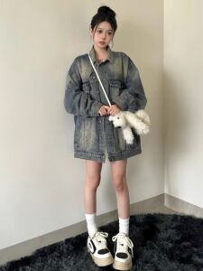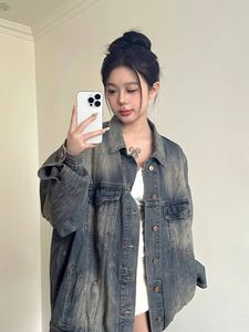 美式复古做旧磨破牛仔外套男女春秋新款潮牌宽松休闲夹克长上衣潮