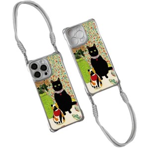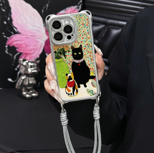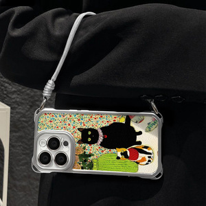 花瓶黑猫适用苹果16手机壳15pro苹果16ProMax情侣款14带挂绳13