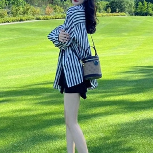 开春季网红炸街减龄绝美法式条纹衬衫配抹胸连衣裙两件套装女