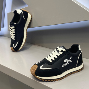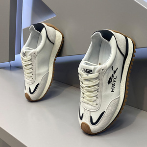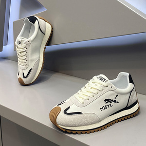yj阿甘鞋男款2025秋季时尚百搭小众包底鞋真皮复古系带个性休闲鞋