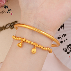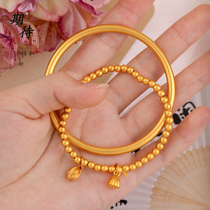 期待时尚轻奢风金店同款两世欢手链古法沙金气质百搭传承素圈手镯