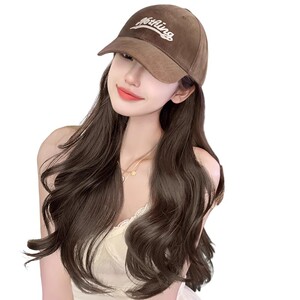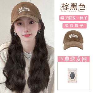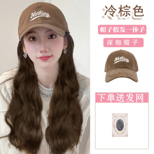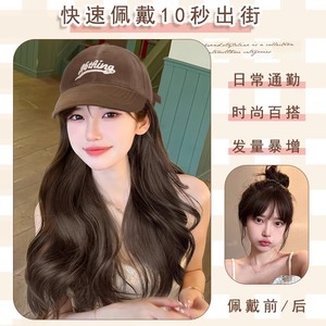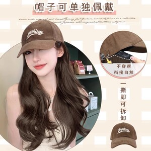 假发帽子一体女时尚慵懒时尚羊毛卷棒球鸭舌帽仿真水波纹假发帽子