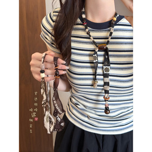 趣味拼接布艺串珠可调节项链女款小众设计系脖锁骨链缠绕手链配饰