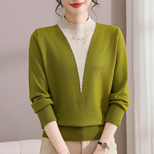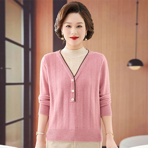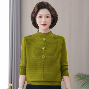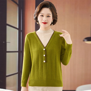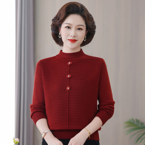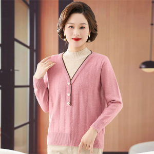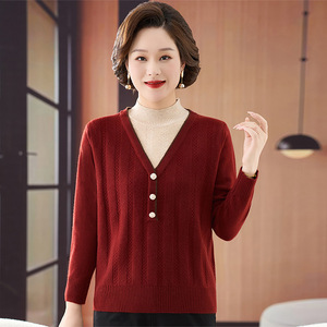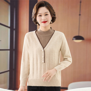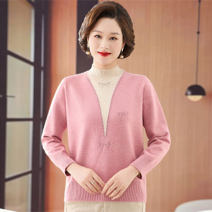 秋季妈妈装毛衣中老年女士针织衫假两件女式打底衫婆婆秋装上衣