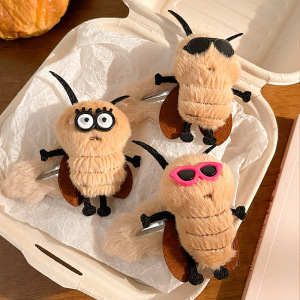创意搞怪蟑螂造型毛绒发夹学生趣味礼物配饰卡通可爱掰掰夹