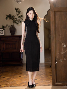 唐依恋黑色复古新中式无袖旗袍女2025秋季新款日常气质素雅年轻款