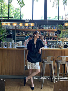 ZHAIAIAIA 黑色极简长袖衬衫女早秋款时尚防晒衫宽松通勤亚麻衬衣
