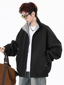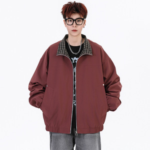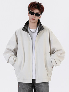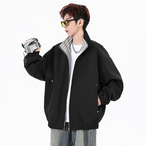 2025潮牌复古外套男春秋季宽松休闲夹克男青少年美式格子领上衣男
