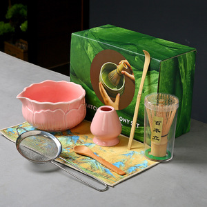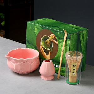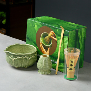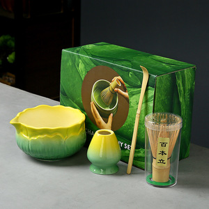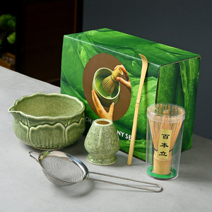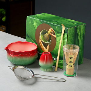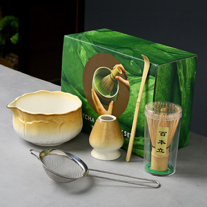 陶瓷渐变抹茶碗套装日式抹茶点茶工具茶筅刷子宋代抹茶粉搅拌器