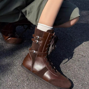 2025新款新疆草原旅游靴子欧美绑带马丁靴女平底德训靴拳击靴短靴