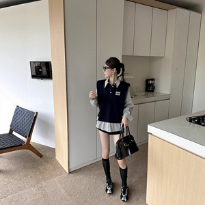 mm家25ss秋冬新款假两件设计外层垫肩设计内层条纹衬衣时髦