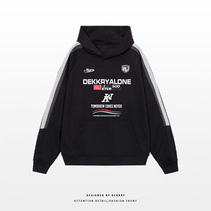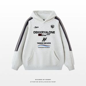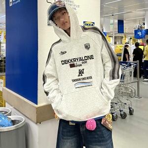 hiphop高街头原创字母印花连帽卫衣男潮牌休闲百搭白灰色拉杠上衣
