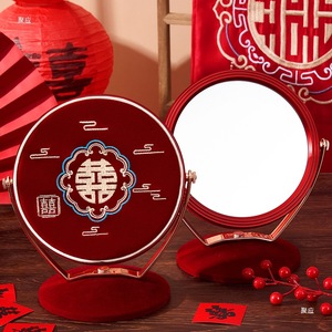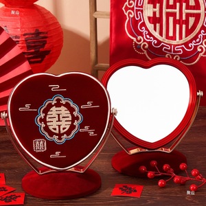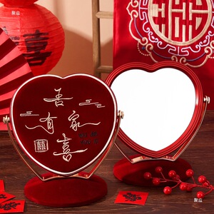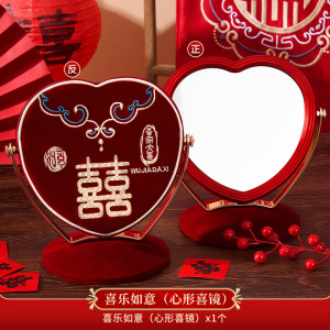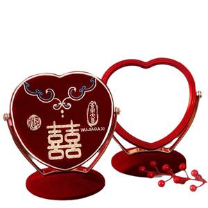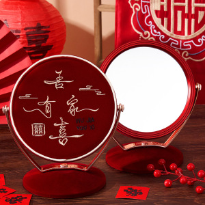 结婚陪嫁镜子一对梳子套装红色喜镜新娘女方出嫁化妆婚礼用品大全