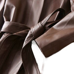 价小个子中长款赫本风海宁皮衣加长版软皮风衣女款棕色皮大衣