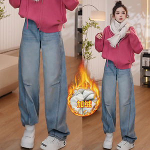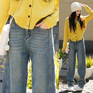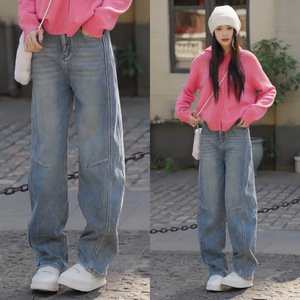 慵懒松弛感牛仔弯刀裤女2025新款秋季高腰宽松显瘦时尚香蕉阔腿裤