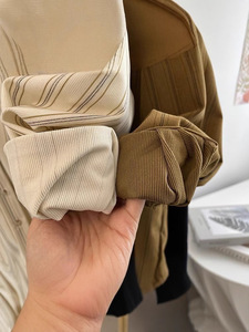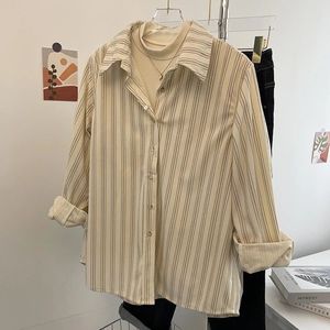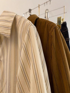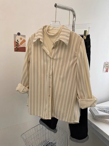 复古灯芯绒竖条纹翻领长袖衬衫女春秋叠穿小个子休闲内搭衬衣外套